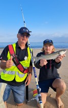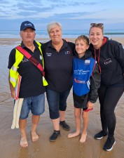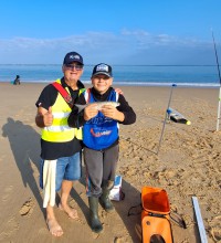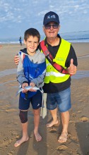 compétiteur benjamin du Calais Team Surfcasting, entouré de Cindy BONVOISIN, sa maman et de Claudine GAMBIER, sa mamie